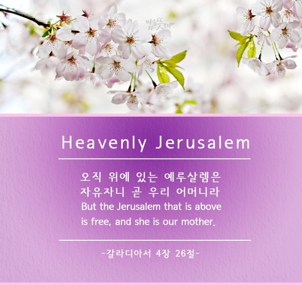 "위에 있는 예루살렘은 자유자니 곧 우리 어머니"하여 영의 아버지와 어머니를 증거하고 있습니다.